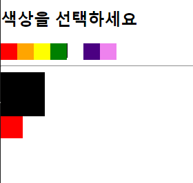 브라우저를 열어서 SelectColors에 있는 정사각형들을 마우스 왼쪽 및 오른쪽 버튼으로 클릭해보세요. 하단에 있는 정사각형들의 색상이 잘 바뀌나요?